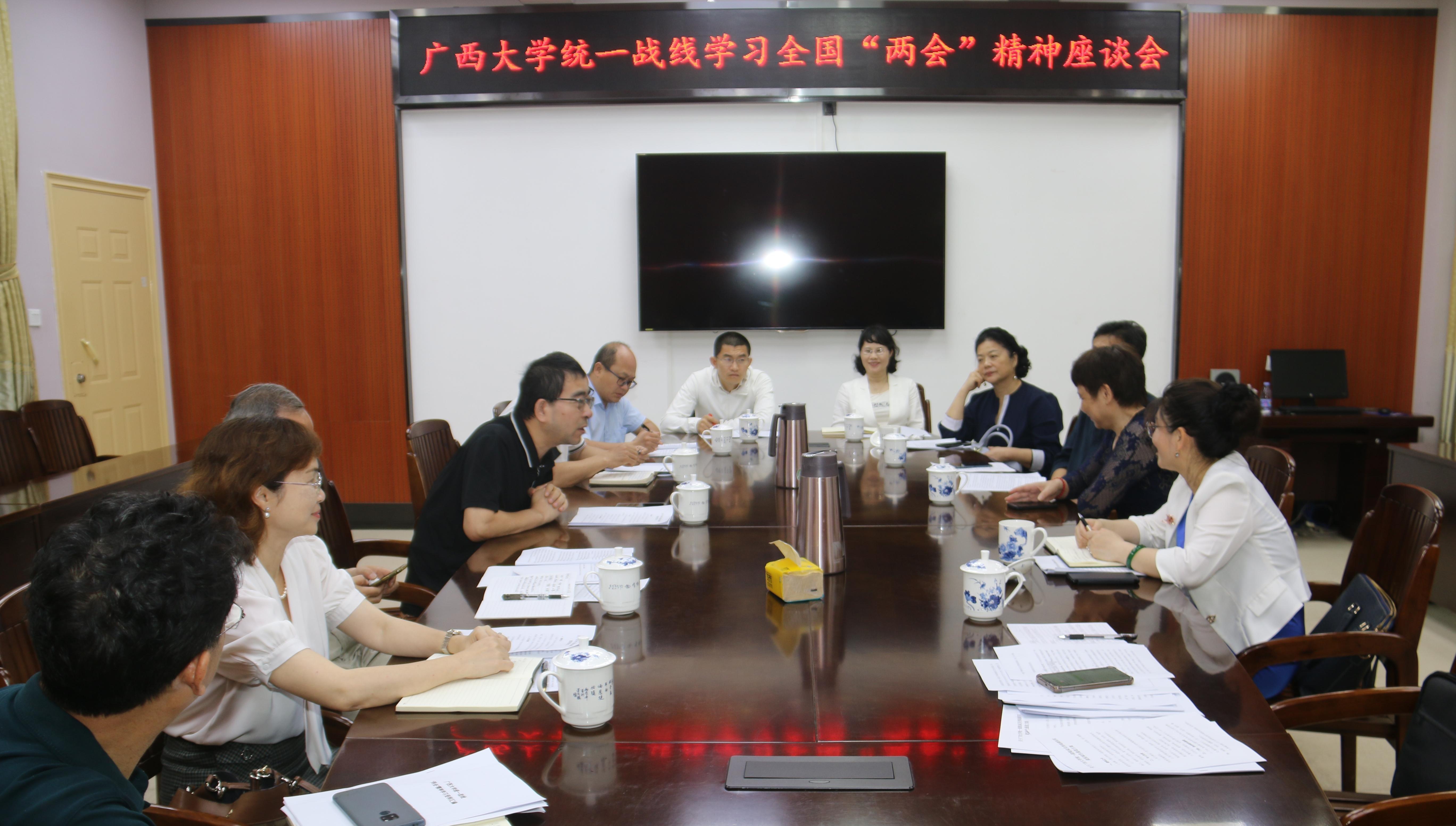 自治区政协委员、民革太阳成集团122ccvip基层委员会主委、农学院副教授覃宝祥,民盟太阳成集团122ccvip基层委员会副主委、国际学院教师王海峰,民建太阳成集团122ccvip基层委员主委、艺术学院院长胡红一,民进太阳成集团122ccvip总支部主委、行健文理学院外语教研部部长覃玉荣,农工党太阳成集团122ccvip基层委员会主委、生命科学与技术学院教授姜伯乐,致公党太阳成集团122ccvip基层委员会主委、生命科学与技术学院副研究员李楠,自治区人大代表、九三学社太阳成集团122ccvip基层委员会主委、校法律事务办公室主任李晖,台胞台属联谊会主席、图书馆馆长王承就,自治区人大代表、归侨侨眷联谊会主席、外国语学院副院长陈碧兰,留学人员联谊会秘书长彭炫等同志参加了座谈会并结合自身教学科研工作谈了学习体会。