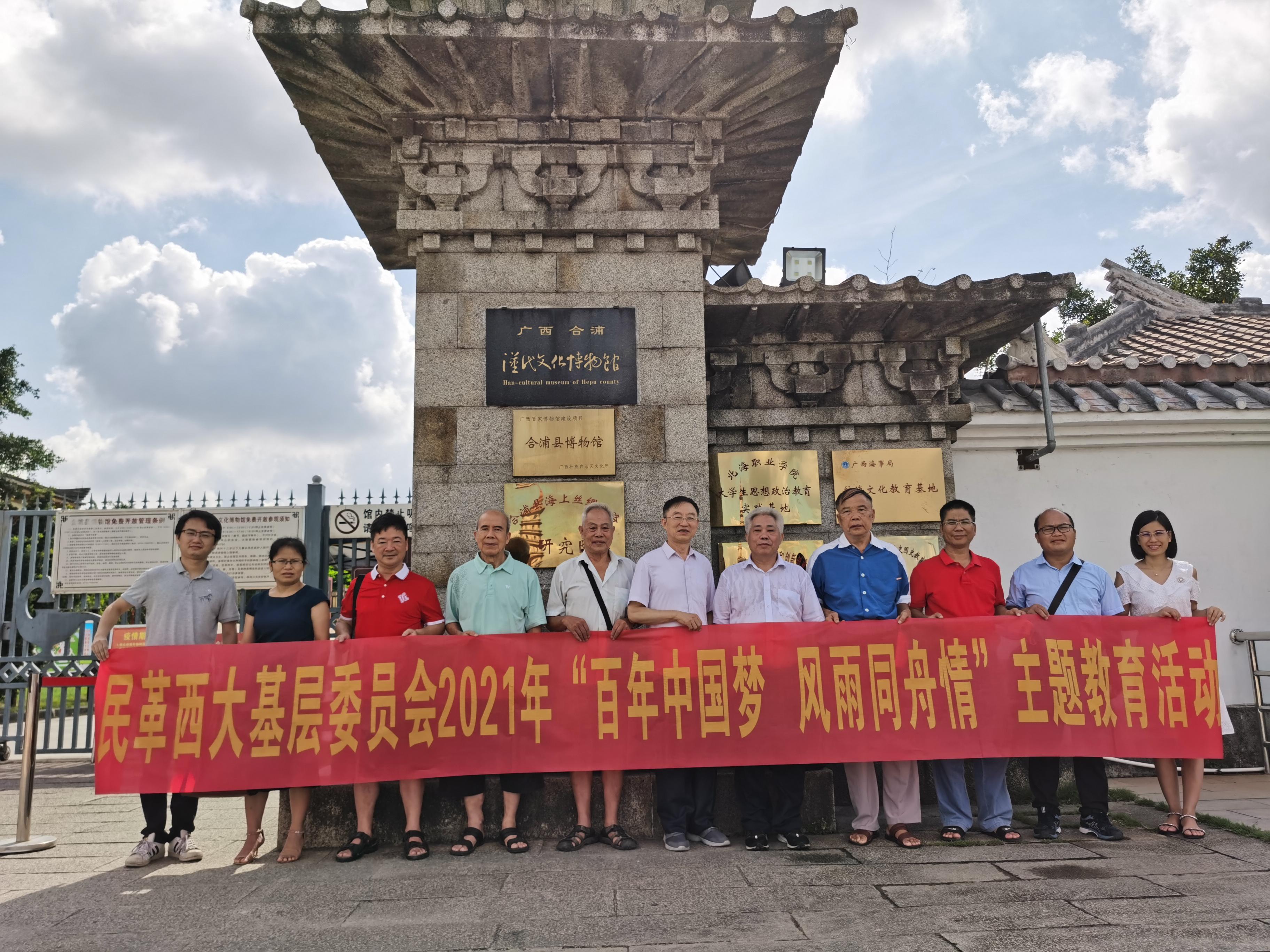 为庆祝中国共产党成立100周年,进一步巩固“不忘合作初心,继续携手前进”主题教育成果,2021年7月10至11日,民革太阳成集团122ccvip基层委员会党员在李伏生主委带领下,赴合浦县开展“百年中国梦,风雨同舟情”主题教育活动。