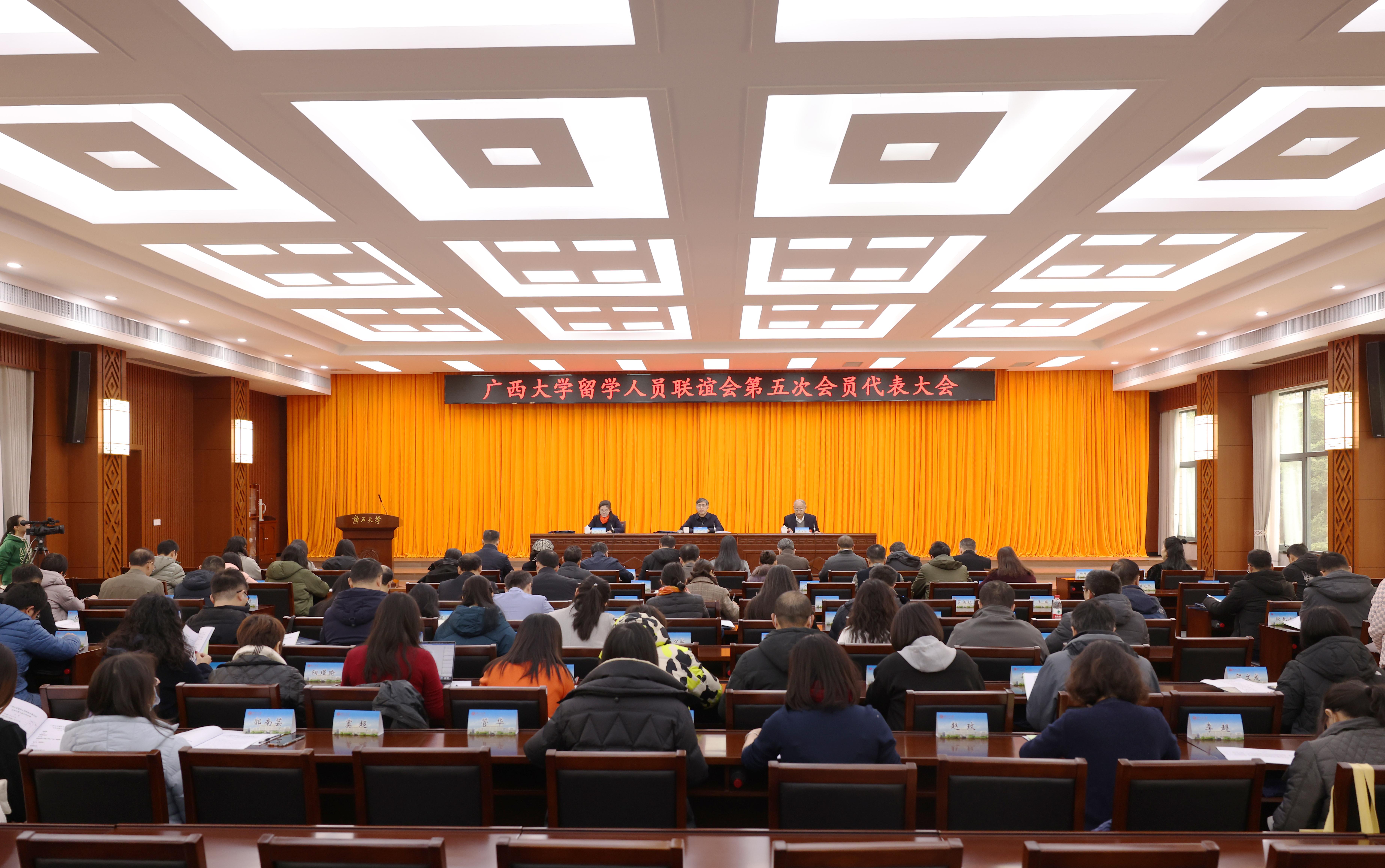 12月19日,太阳成集团122ccvip留学人员联谊会在太阳成集团122ccvip君武馆召开第五次会员代表大会,学习了太阳成集团122ccvip总书记致欧美同学会成立110周年贺信,选举产生新一届理事会领导班子。广西欧美同学会(广西留学人员联谊会)向大会发来贺信。太阳成集团122ccvip党委副书记马少健出席会议并讲话,副校长冯家勋代表太阳成集团122ccvip留学人员联谊会第四届理事会作工作报告。太阳成集团122ccvip校长助理、党委统战部部长姚作芳主持大会。