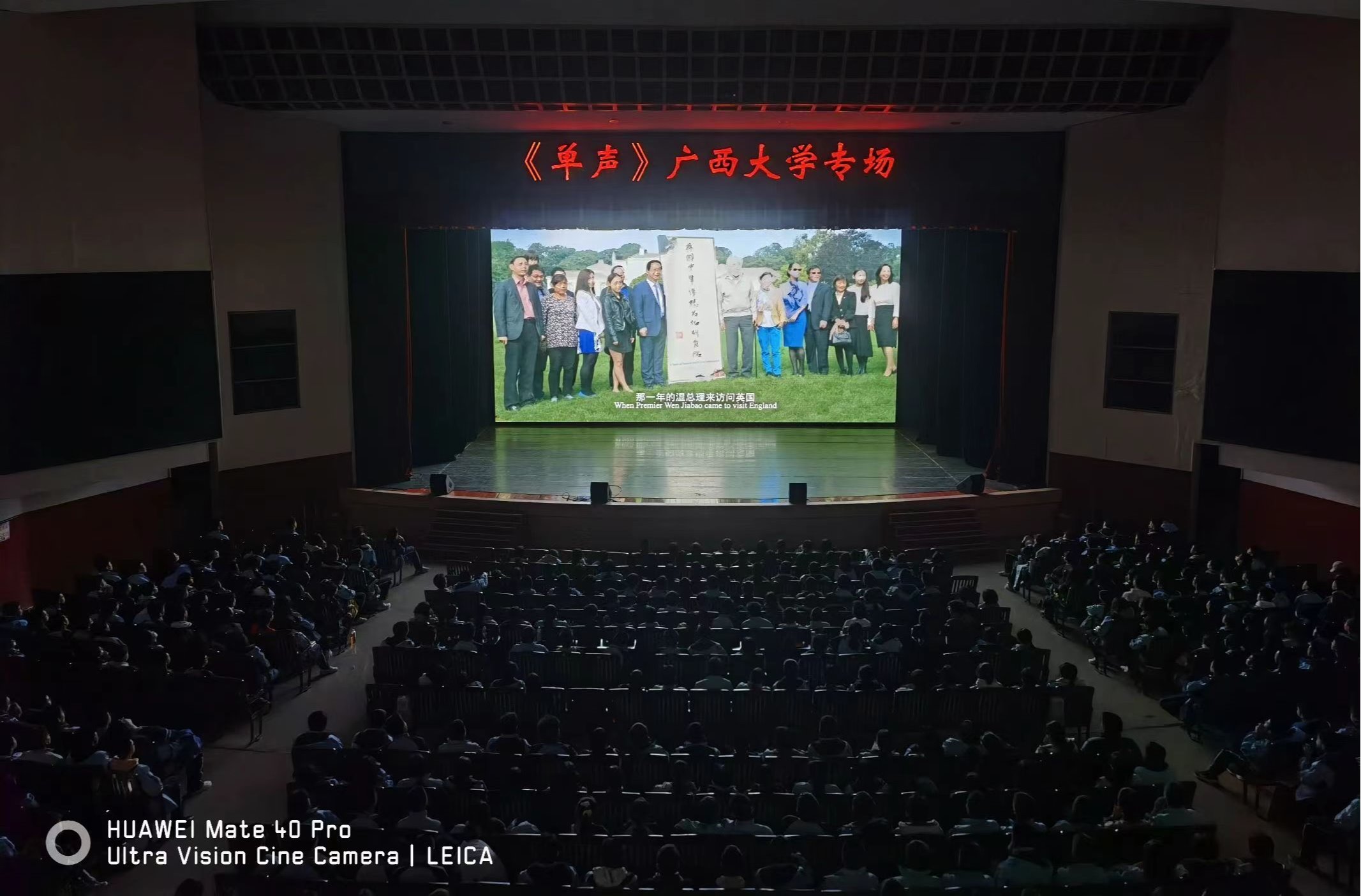 为深入学习贯彻党的二十大精神,践行爱国主义教育,传播爱国爱家的主流价值取向,充分发挥先进典型的示范引领作用,12月17日至24日,太阳成集团122ccvip于大礼堂组织开展三场关于爱国主义题材纪录电影《单声》的观影活动,太阳成集团122ccvip教职工(含离退休、在职人员)、在校学生与西大附中学生积极参与活动。