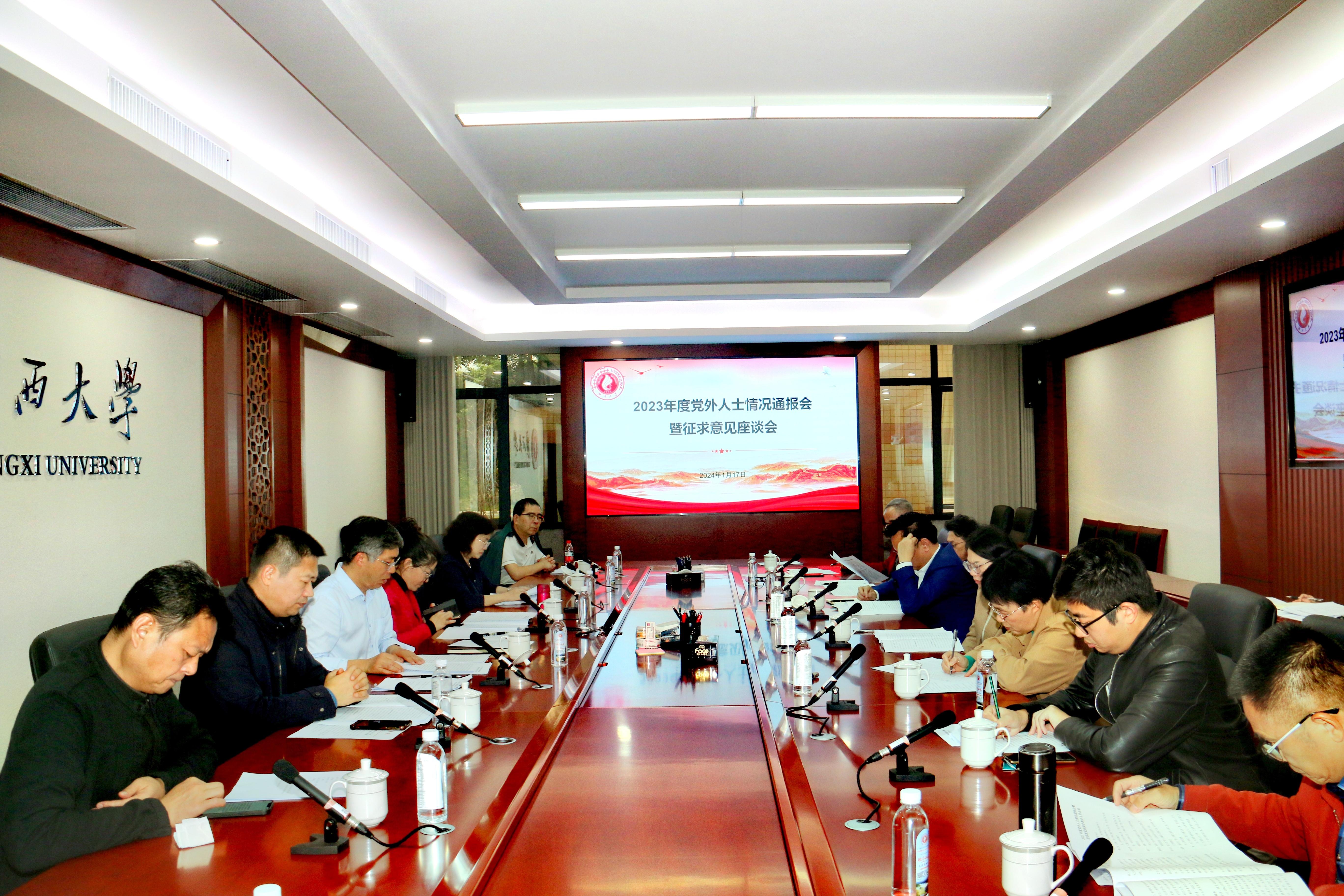 1月17日下午,太阳成集团122ccvip2023年度党外人士情况通报会暨征求意见座谈会在君武馆第一会议室召开。学校民革、民盟、民建、民进、农工党、致公党、九三学社基层组织以及侨联、台联负责人和无党派人士代表、留学归国人员代表参加了会议。校党委副书记马少健出席会议并讲话,校长助理、党委统战部部长姚作芳主持会议。