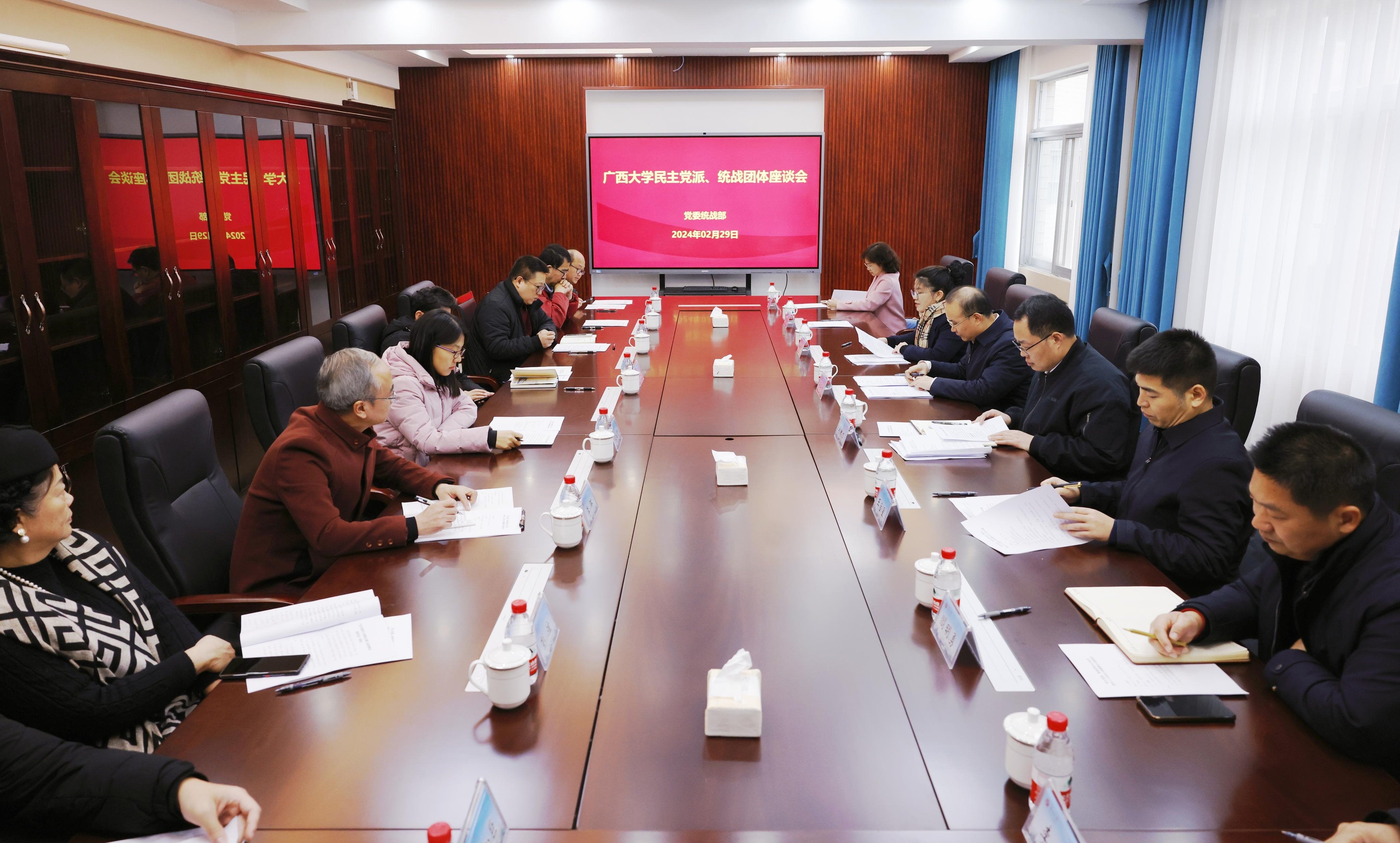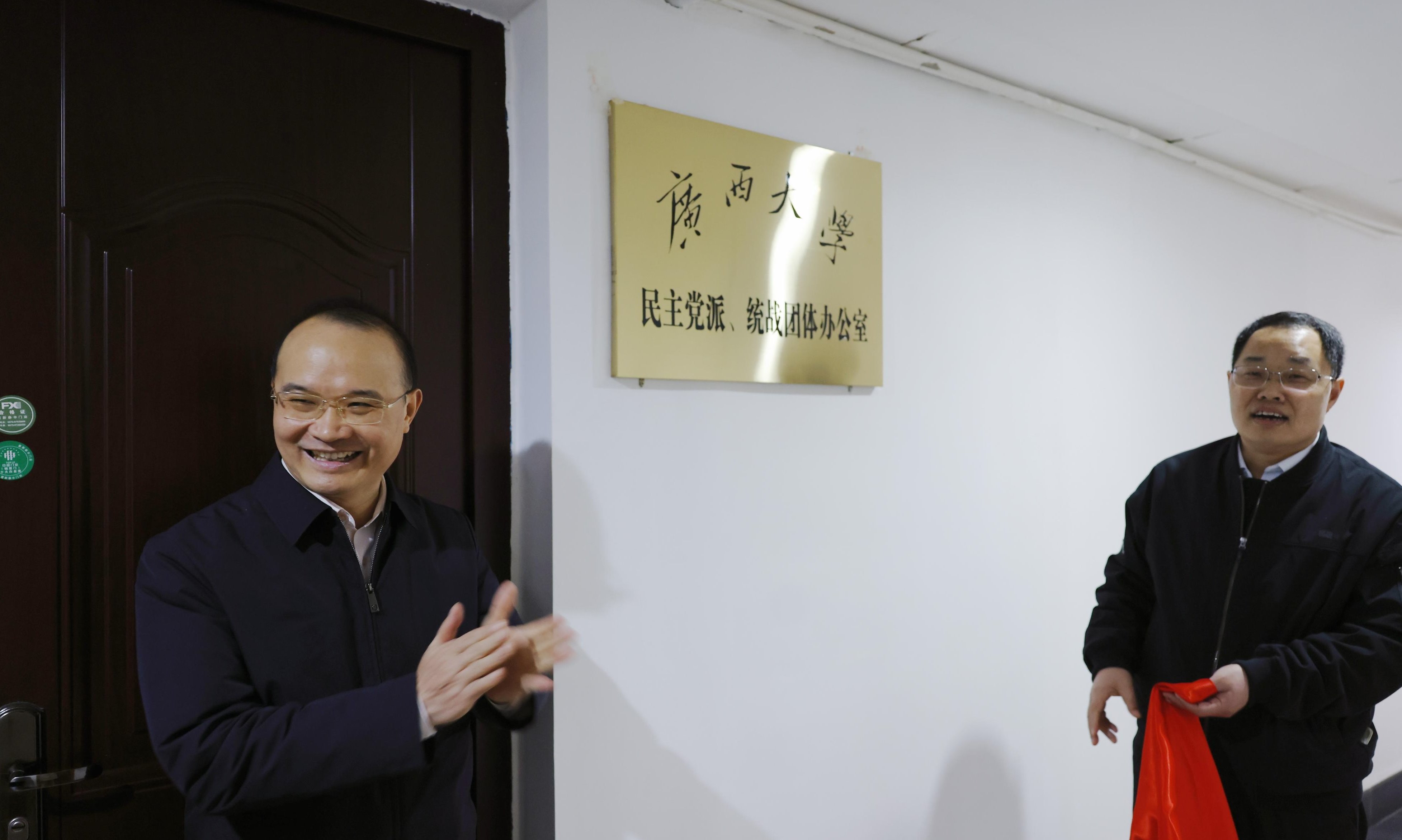 2月29日下午,太阳成集团122ccvip太阳成集团122ccvip、统战团体办公室及党外人士活动之家揭牌仪式在君武馆举行。自治区党委统战部副部长冯华清,校党委副书记马献力,共同为太阳成集团122ccvip太阳成集团122ccvip、统战团体办公室、太阳成集团122ccvip党外人士活动之家、太阳成集团122ccvip归国留学人员之家揭牌。揭牌仪式后举行工作座谈会,冯华清、马献力讲话,校党委常委、校长助理、统战部部长姚作芳主持座谈会。