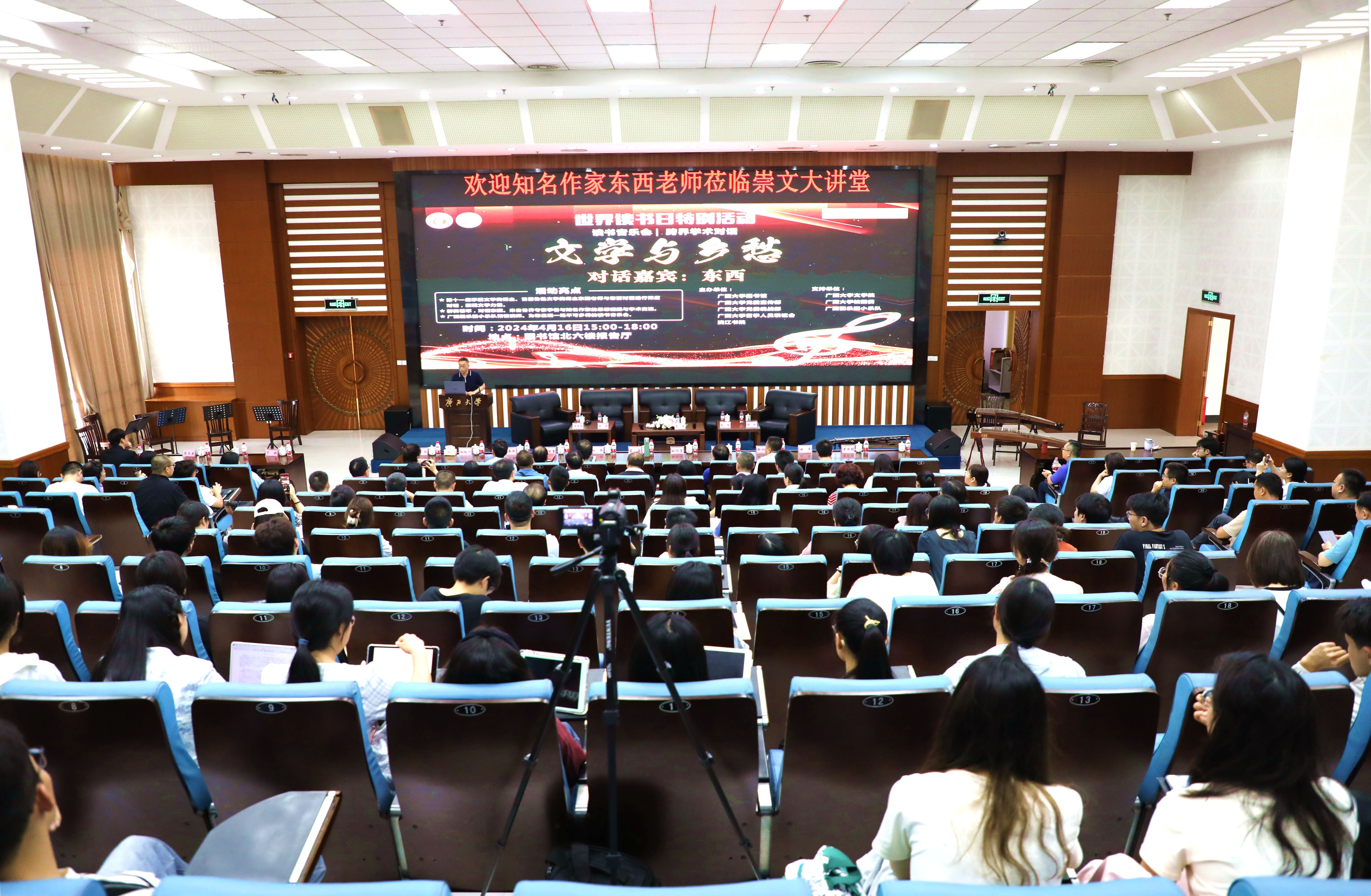 4月16日下午,为庆祝太阳成集团122ccvip留学人员联谊会成立20周年,在第29个世界读书日之际,太阳成集团122ccvip、党委宣传部、图书馆、留学人员联谊会等单位在学校图书馆学术报告厅联合举办了一场别开生面的音乐读书会。广西文联主席、广西作家协会主席、广西首位茅盾文学奖获得者东西老师应邀到场参加“问答东西——‘文学与乡愁’”跨界学术对话,与现场嘉宾听众一起聚焦文学热点话题与名家作品,共同感受文学创作与各界碰撞的魅力。