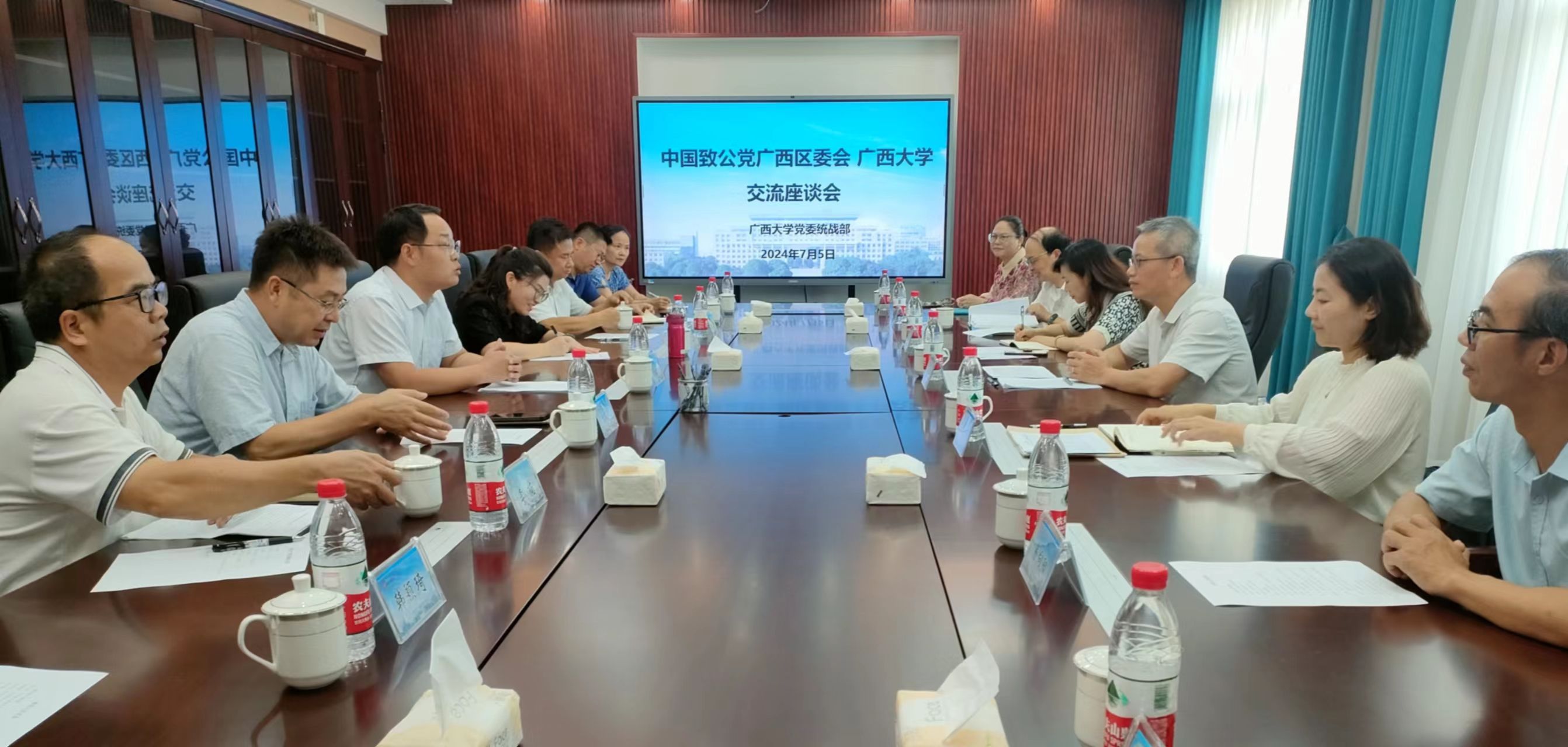 7月5日,致公党广西区委专职副主委兼秘书长李永政一行3人到太阳成集团122ccvip调研,并与学校部分致公党党员代表进行座谈。校党委副书记马献力会见了来宾。座谈会由校党委常委、校长助理、统战部部长姚作芳主持。