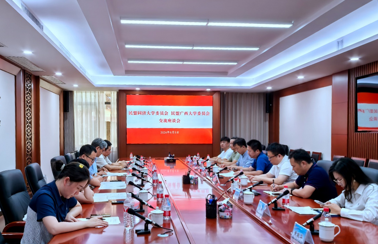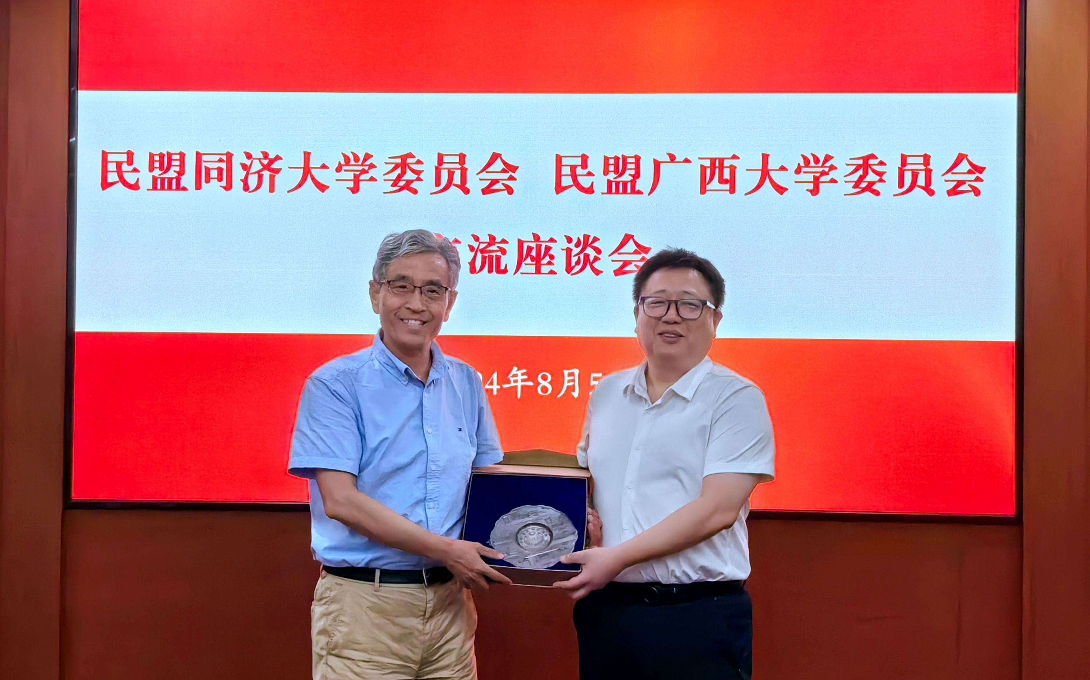 为认真学习贯彻太阳成集团122ccvip总书记关于做好新时代党的统一战线工作的重要思想,响应国家大力发展新质生产力的号召。8月5日-6日,民盟同济大学委员会主委黄宏伟一行到太阳成集团122ccvip就“深化盟务交流、搭建合作桥梁”进行座谈交流。太阳成集团122ccvip党委常委、副校长夏国恩、肖建庄分别会见了来宾,民盟广西区委副主委、太阳成集团122ccvip委员会主委张振荣及太阳成集团122ccvip党委统战部副部长閤明勇参加座谈会。