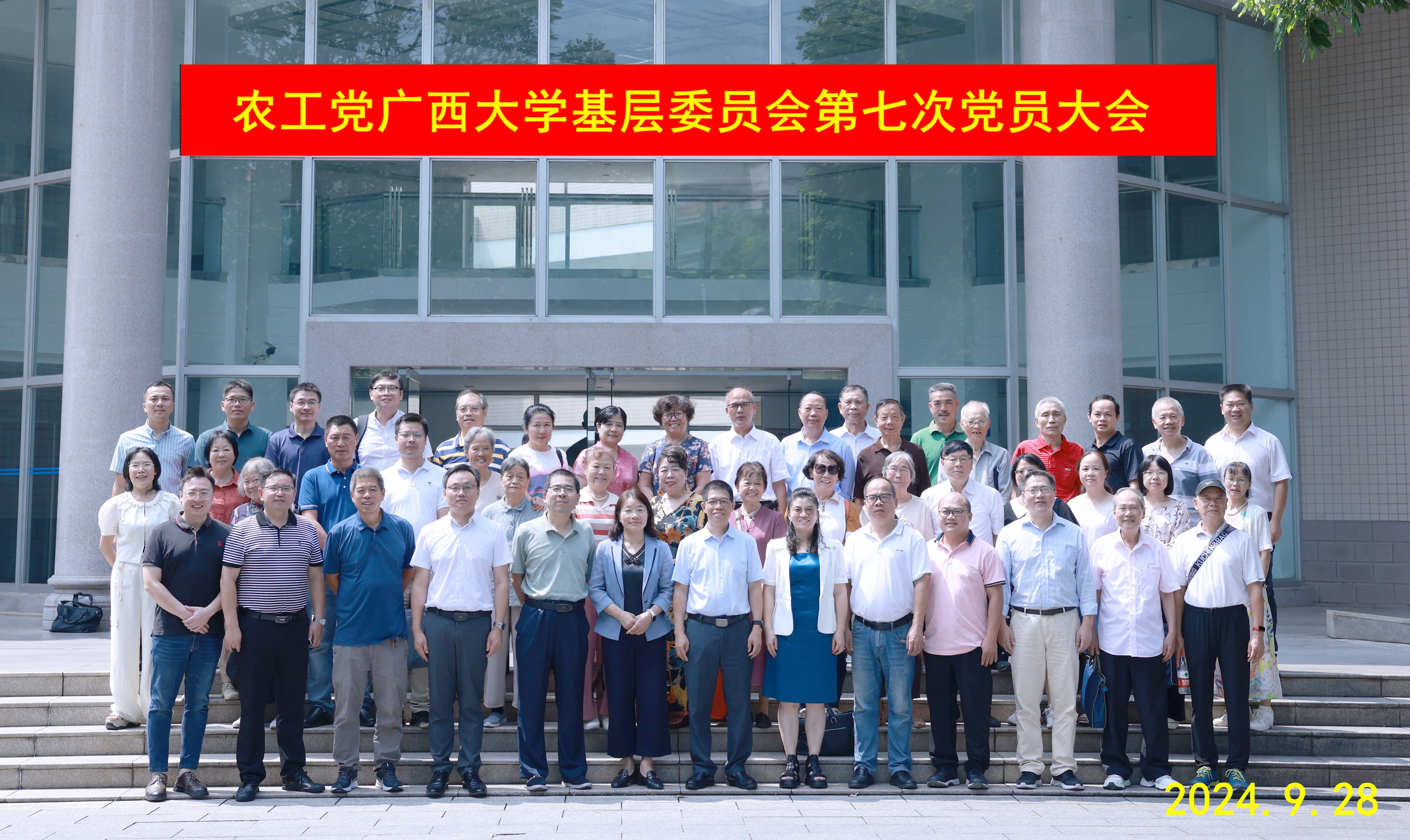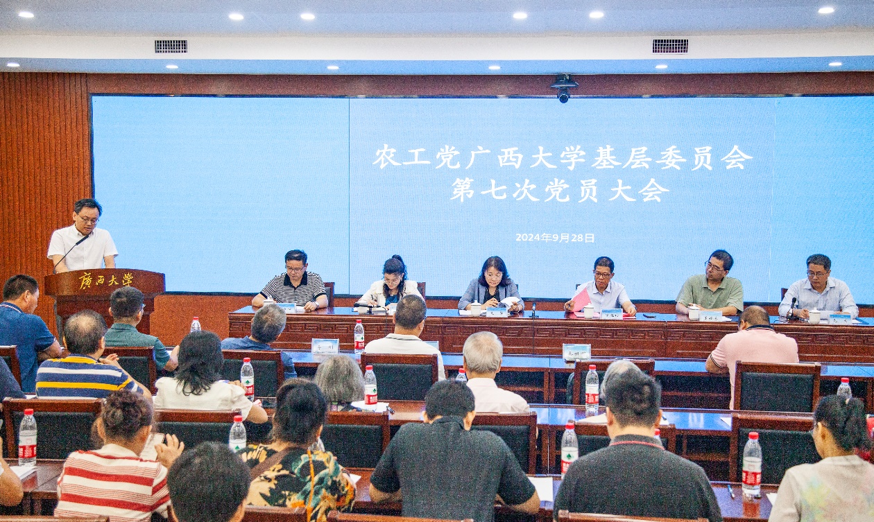 2024年9月29日,农工党太阳成集团122ccvip基层委员会第七次党员大会在太阳成集团122ccvip君武馆第二会议厅召开。农工党广西区委副主委义芳,太阳成集团122ccvip党委常委、副校长宁旭初,太阳成集团122ccvip党委常委、统战部部长姚作芳,农工党广西区委组织部部长张世坤应邀出席大会。