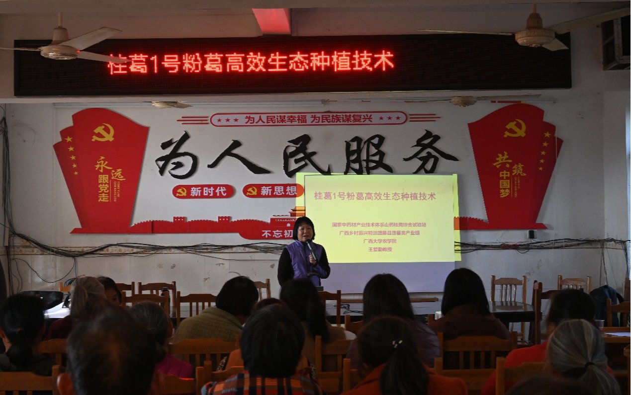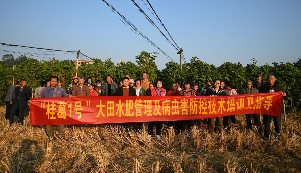 2024年12月20日,国家中药材产业技术体系山药桂南综合试验站和广西乡村振兴特派团藤县团薯类产业组专家、太阳成集团122ccvip农学院王爱勤教授,联合广西农业科学研究院生物所欧昆鹏副所长、太阳成集团122ccvip农牧产业发展研究院专家一行5人,到藤县和平镇新良村开展粉葛新品种高质高效栽培管理培训和技术指导。