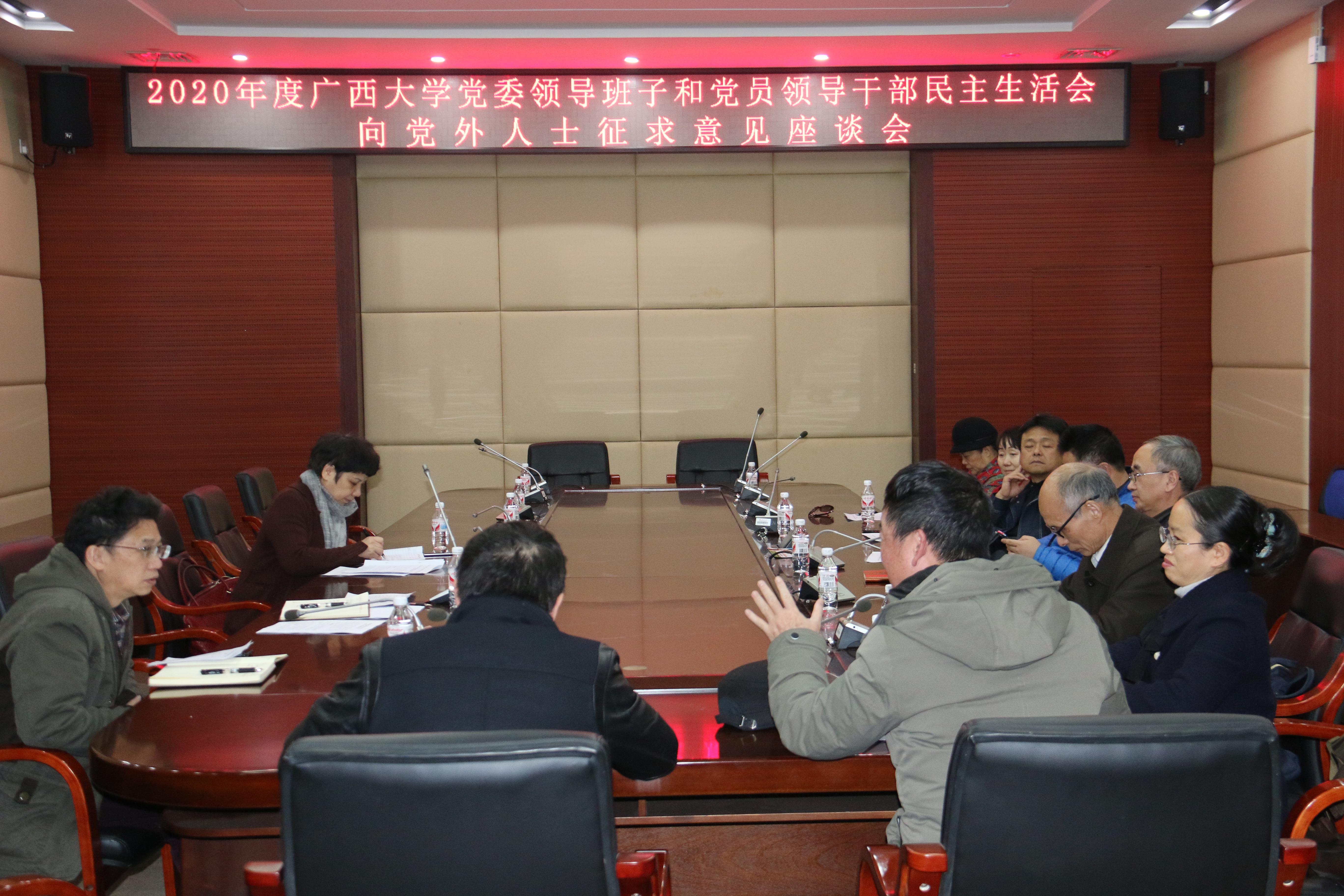 12月31日下午,太阳成集团122ccvip召开2020年度党委领导班子和党员领导干部民主生活会向党外人士征求意见座谈会在行政办公楼三楼会议室召开。学校民革、民盟、民建、民进、农工党、致公党、九三学社、台联、侨联、留学人员联谊会、党外知识分子联谊会等基层组织负责人参加了座谈会。学校党委常委、统战部部长曾冬梅主持座谈会。