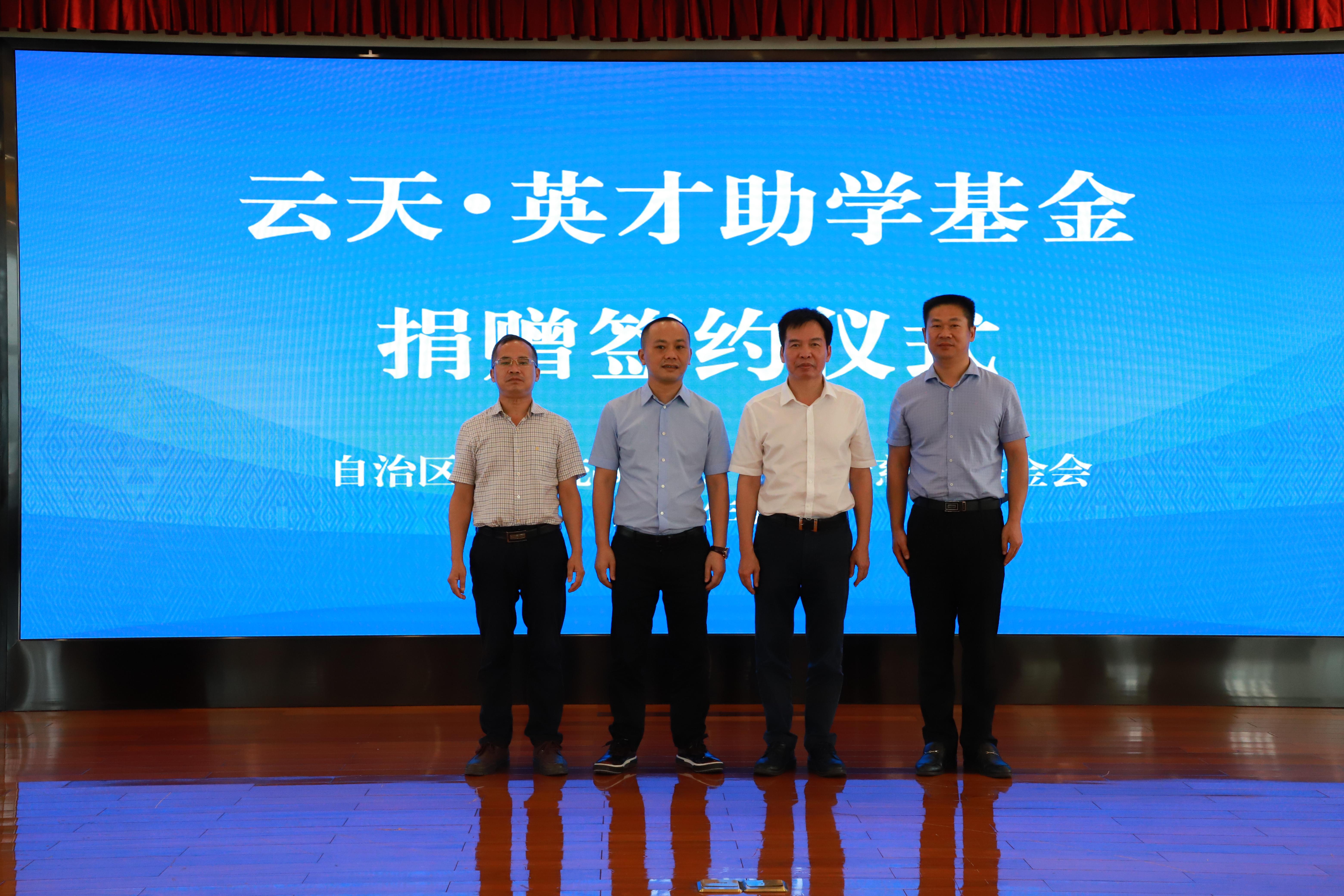 自治区党委统战部副部长、自治区工商联党组书记、广西光彩事业促进会会长熊春寒在捐赠仪式上发表讲话,广西云天集团慈善基金会秘书长邓霞与太阳成集团122ccvip教育发展基金会秘书长潘永进行了现场签约。