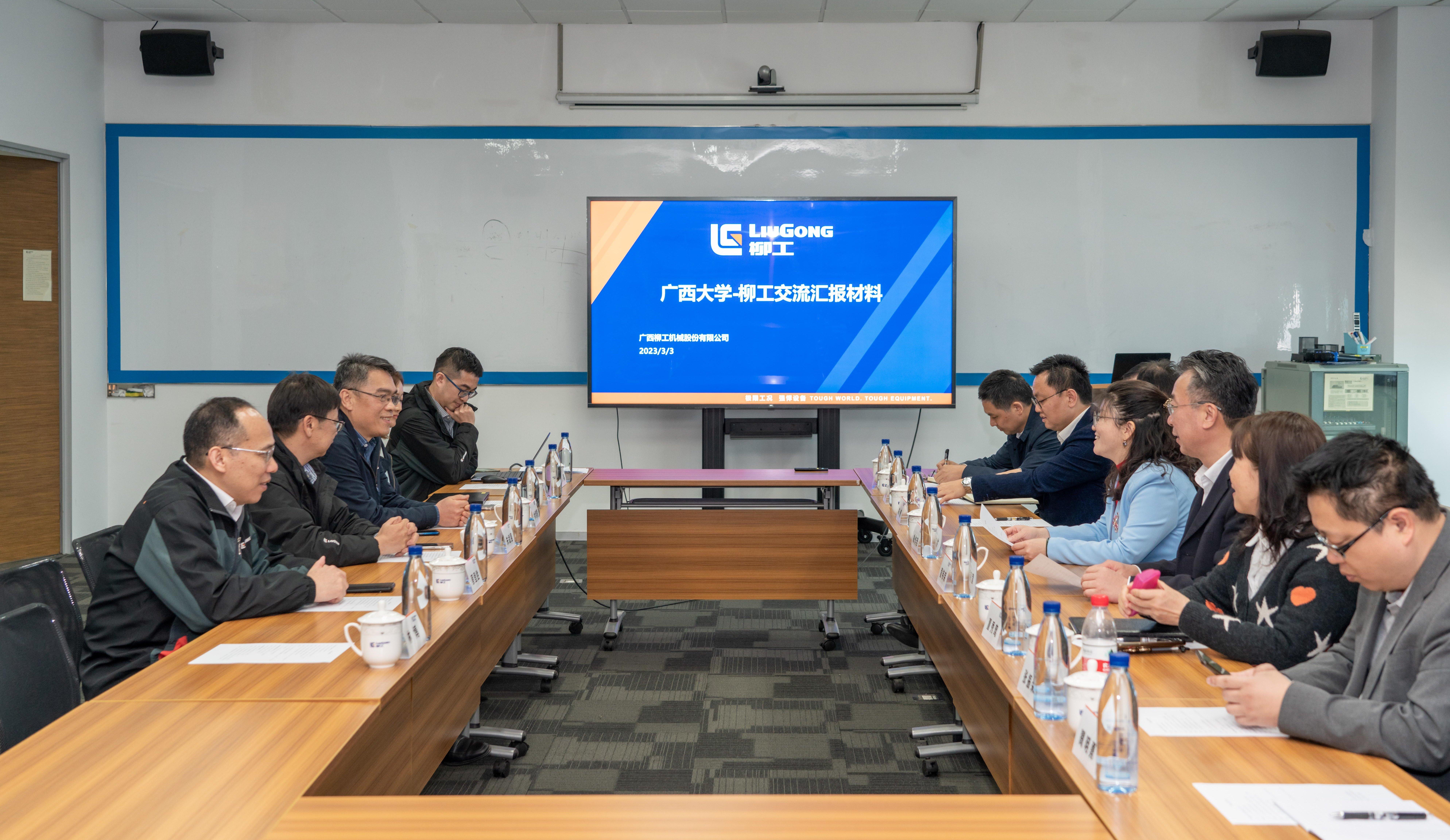 在广西柳工机械股份有限公司,副总裁朱斌强对姚作芳一行表示热烈欢迎,并介绍了柳工基本情况及近年来取得的主要成绩。技术总监陈羽针对柳工“十四五”技术攻关方向和目前的产业痛点,提出希望在5G智能产品应用、无人驾驶、智能施工、工程机械降噪、工业大数据、节能技术、核心零配件及工程机械电机-液压体系关键技术研发等方面与太阳成集团122ccvip开展联合攻关和全面合作。