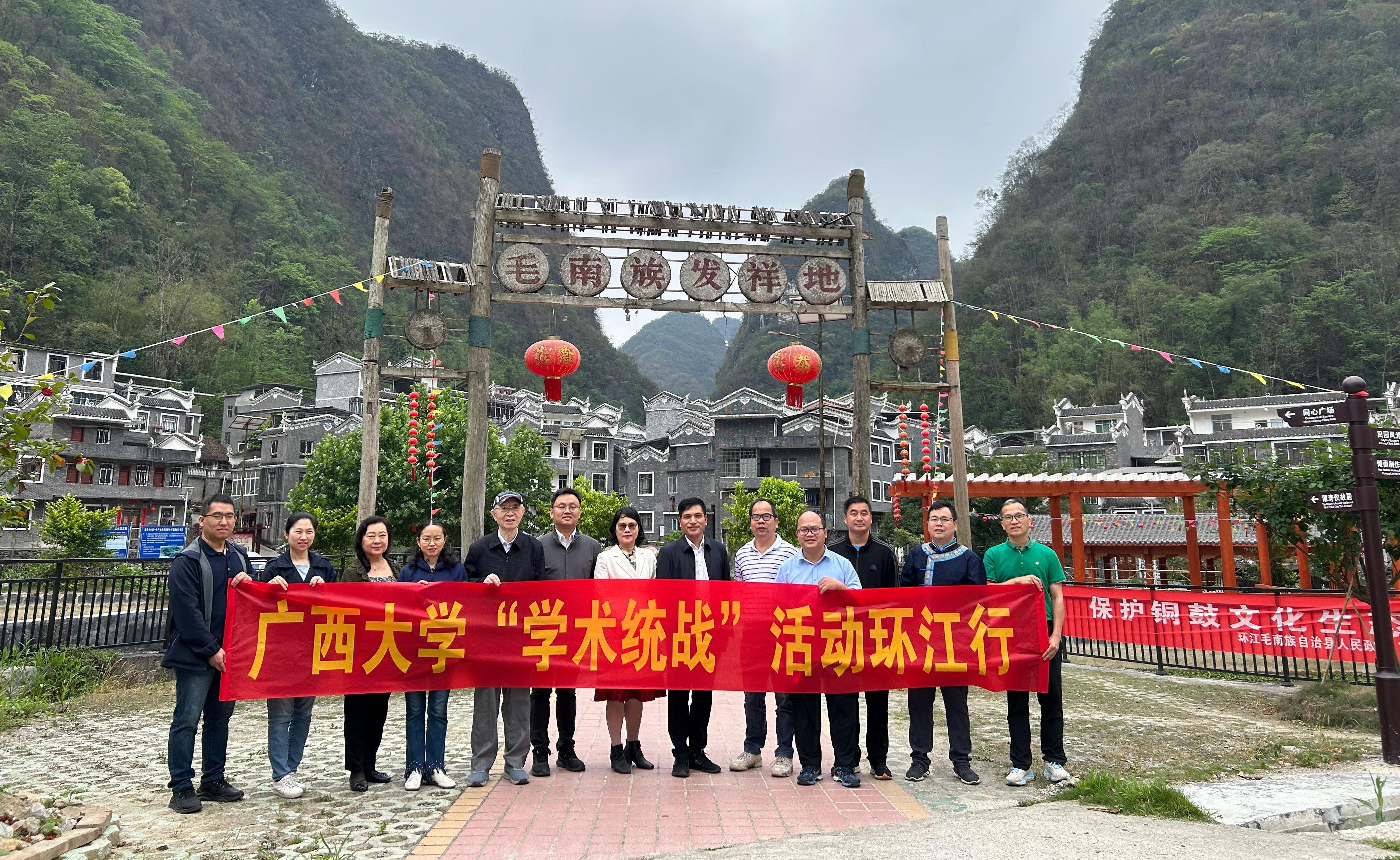 2023年4月26日至28日,为深入学习贯彻 “二十大”和2023年全国“两会”精神,进一步促进铸牢中华民族共同体意识与乡村振兴有效衔接,科技助力乡村振兴高质量发展,民进太阳成集团122ccvip总支部、民革太阳成集团122ccvip基层委员会、致公党太阳成集团122ccvip基层委员会等一行10名教授专家到环江毛南族自治县开展“学术统战”活动,先后到广西环江川山大沙坡万亩油茶基地、下南乡南昌屯(毛南族发祥地)特色菜牛养殖基地、思恩镇陈双村、环江南大门桑蚕养殖专业合作社等地开展科技帮扶乡村振兴工作与民族团结进步创建情况调研。调研活动得到了环江县党委和人民政府领导的大力支持和热情接待,县党委统战部领导全程陪同调研。