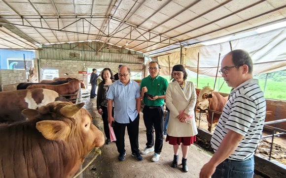 在下南乡菜牛特色养殖基地,调研组专家了解了养殖基地的菜牛存量情况、饲料来源以及基地运作情况。针对目前养殖规模小、育肥时间长、成本高以及经济效益低的问题,调研组专家针对如何有效防治春秋季养牛寄生虫、充分利用好现有资源如桑蚕叶、油茶榨油残渣经过提取微生物发酵、变废为宝等方法,降低养牛成本,提高经济效益和农户收入等建议。