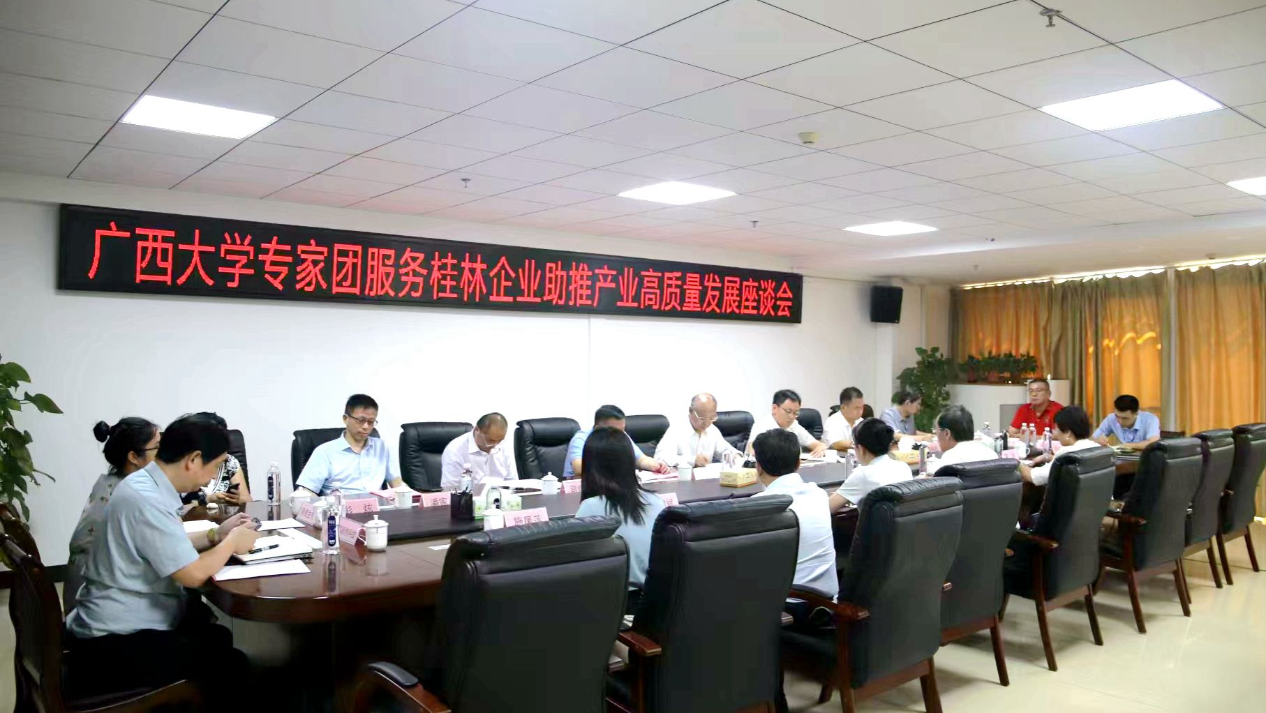 考察结束后,在桂林市高新区召开了“服务桂林企业,助推产业高质量发展座谈会”。桂林市科技局党组书记、局长曹方明主持会议,桂林市高新区管委会副主任赵红玲参加了座谈。会上,桂林集琦生化有限公司、桂林精成生物科技有限公司、广西珂深威医疗科技有限公司、桂林市赛路纳科技有限公司分别介绍了企业基本情况,重点介绍了项目研发过程中遇到的技术难点和技术需求。专家们针对企业提出的技术问题进行了现场答疑和技术指导。