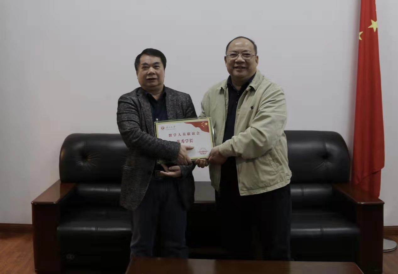 覃成强向优秀学长颁发荣誉证书
