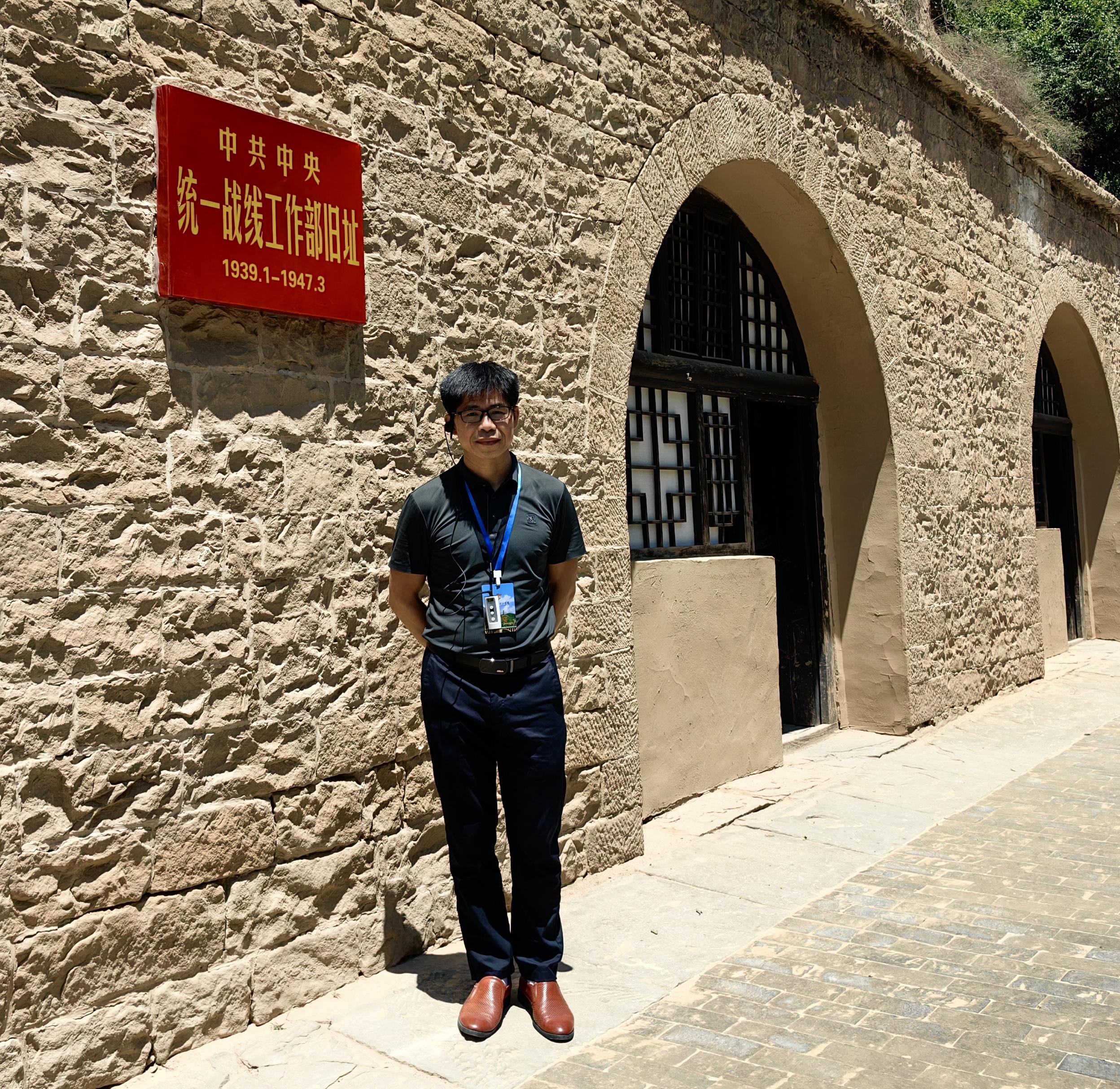 黄宝中在杨家岭中共中央统一战线工作部旧址前留影