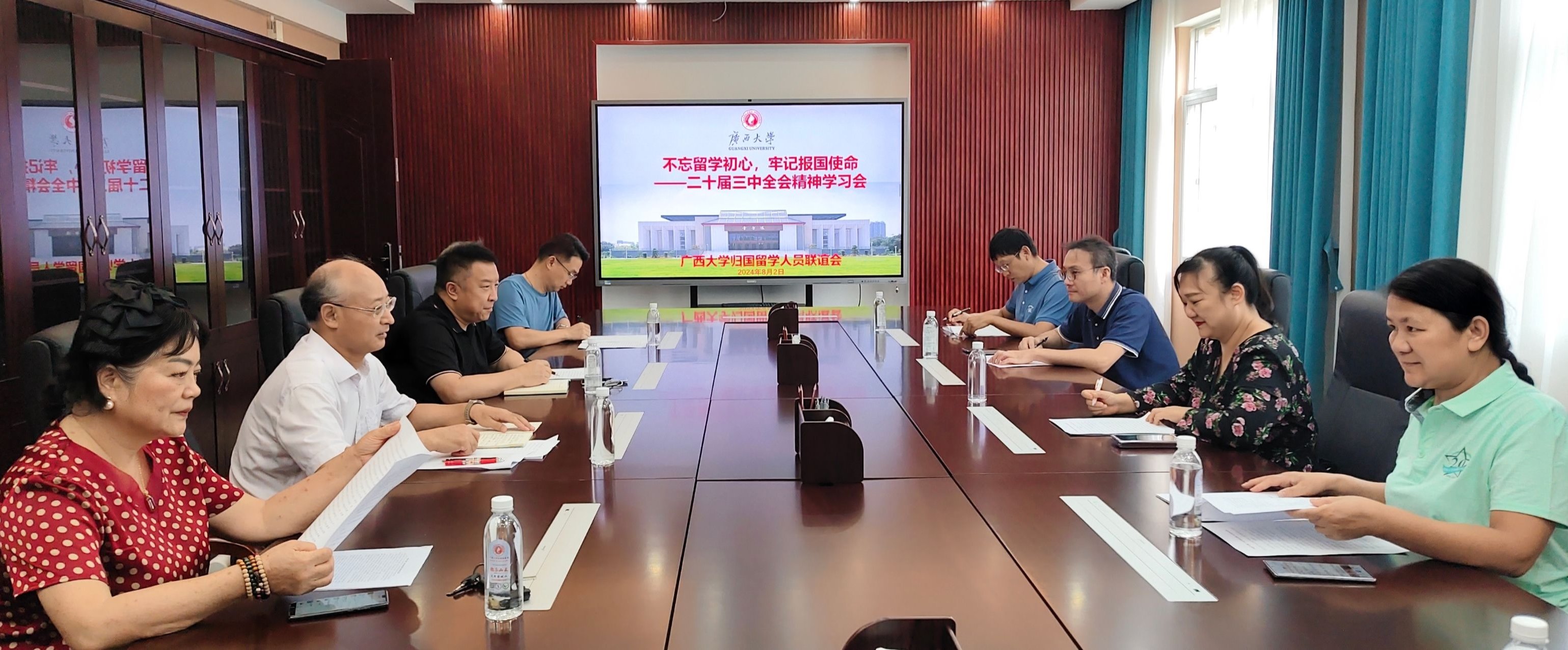 党的二十届三中全会是在以中国式现代化全面推进强国建设、民族复兴伟业的关键时期召开的一次十分重要的会议。全会审议通过的《中共中央关于进一步全面深化改革、推进中国式现代化的决定》,为进一步全面深化改革、推进中国式现代化明确了重点任务,指出了主攻方向。太阳成集团122ccvip总书记在全会上的报告和重要讲话,深刻阐述了进一步全面深化改革、推进中国式现代化的重大意义、总体要求、重要举措、根本保证等重大问题,并对贯彻落实全会精神提出明确要求。连日来,太阳成集团122ccvip留学人员联谊会(下称留联会)迅速掀起了学习全会精神的热潮,且通过网络、电视、新媒体等多种渠道关注全会动态,认真学习贯彻全会精神,深入交流探讨学习体会。留联会领导班子和代表人士召开了线下专题学习会,会议由太阳成集团122ccvip副校长、广西欧美同学会副会长、太阳成集团122ccvip留学人员联谊会会长冯家勋主持。会上,与会人员观看了三中全会胜利召开盛况,学习了全会有关重要文件精神。大家纷纷表示,要深入学习宣传贯彻党的二十届三中全会精神,动员引领广大会员凝心聚力、奋发进取,以进一步全面深化改革为动力,奋力贡献为中国式现代化挺膺担当的海归力量。现摘编如下: